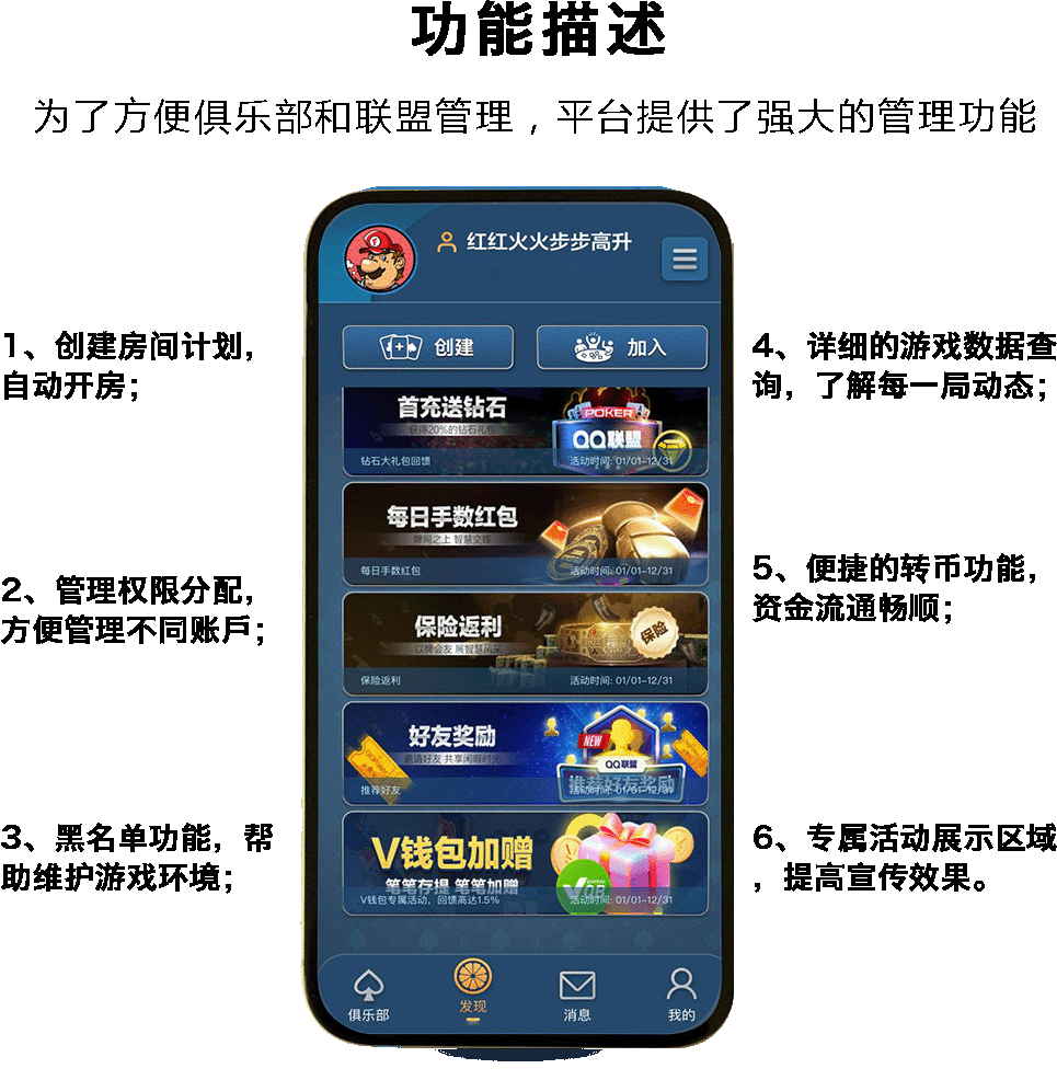 平台为俱乐部和联盟提供了全面的管理功能和权限,帮助玩家更好地维护和管理牌桌。玩家可以创建自己的俱乐部,邀请好友组队比赛,也可以加入其他玩家创建的俱乐部,结识志同道合的伙伴。有了俱乐部之后,还可以加入联盟,享受联盟提供的各种福利和奖励。